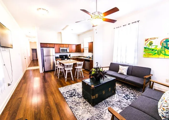 Esta villa se encuentra a unos cuantos pasos de la calle Frenchmen, mientras que el Confederate Memorial Hall Museum está a unos 400 metros. Los huéspedes también pueden visitar el Acuario de las Américas, situado a una distancia de 2 km de esta casa de vacaciones, o ver el Parque Louis Armstrong, a unos 10 minutos a pie. Situada cerca de la Catedral de St. Louis, el establecimiento es uno de los destinos favoritos de fieles y turistas.
